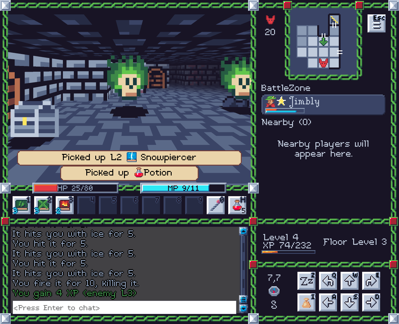 Inspired by classic BBS Door games like Legend Of the Red Dragon, go fight things, get stronger, and fight tougher things!